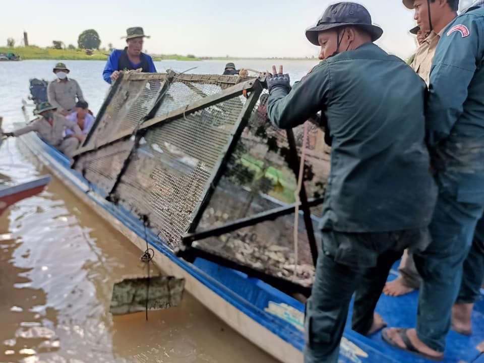 កំពង់ឆ្នាំង ៖ ជនសង្ស័យ២នាក់ ត្រូវកម្លាំងសមត្ថកិច្ចខេត្តកំពង់ឆ្នាំងធ្វើការឃាត់ខ្លួនជាបន្តបន្ទាប់ ក្នុងប្រតិបត្តិការបង្ក្រាបបទល្មើសនេសាទ ទ្រង់ទ្រាយធំនៅស្រុកបរិបូរណ៍ ។
