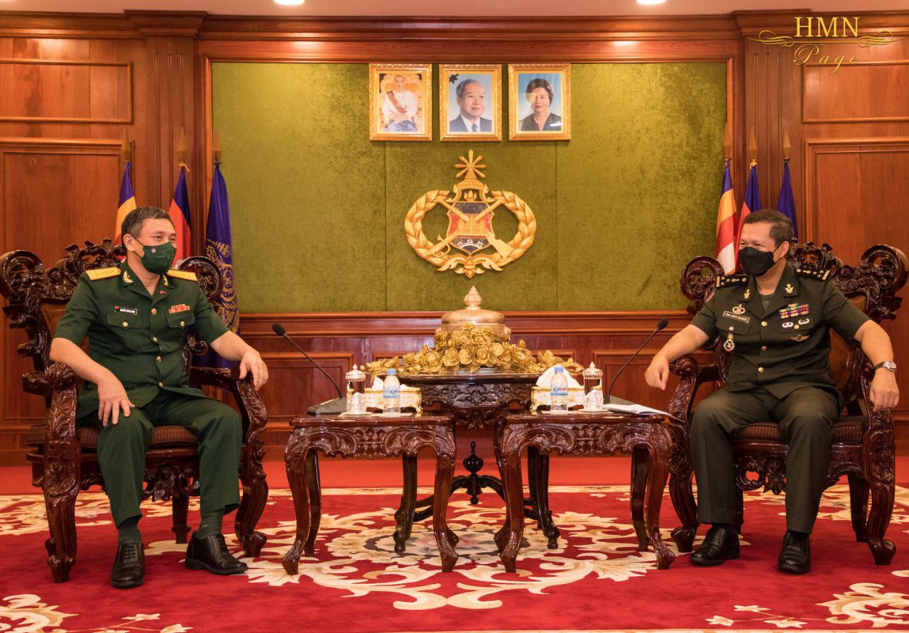 នាព្រឹកថ្ងៃទី៣១ ខែមីនា ឆ្នាំ២០២២ ឯកឧត្តម ឧត្តមសេនីយ៍ឯក ហ៊ុន ម៉ាណែត អគ្គមេបញ្ជាការរងនៃកងយោធពលខេមរភូមិន្ទ មេបញ្ជាការកងទ័ពជើងគោក បានទទួលជួប ឯកឧត្តម ង្វៀន ហ៊ុយតាំង ឯកអគ្គរដ្ឋទូត នៃសាធារណរដ្ឋសង្គមនិយមវៀតណាម ប្រចាំនៅកម្ពុជា ព្រមជាមួយនឹងលោកវរសេនីយ៍ឯក ង្វៀន ថាញ់ជីញ អនុព័ន្ធយោធាដែលទើបបញ្ចប់អាណត្តិ និងលោកវរសេនីយ៍ឯកបម្រុង ជិន វ៉ាន់តឹម អនុព័ន្ធយោធាថ្មី ដើម្បីសម្តែងការគួរសម, ជម្រាបលា និងណែនាំខ្លួន នៅទីបញ្ជាការកងទ័ពជើងគោក នៃកងយោធពលខេមរភូមិន្ទ។