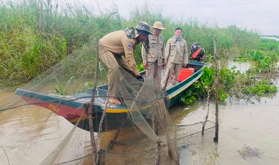 កំពង់ឆ្នាំង៖ របាំងសាច់អួន១១កន្លែង និង របាំងស្បៃមុង១២កន្លែង ដែលជនល្មើសដាក់ស្ទាក់ចាប់ត្រីនៅតាមដងទន្លេសាប ក្នុងភូមិសាស្ត្រ ស្រុកបរិបូរណ៍ ស្រុកកំពង់លែង និង ស្រុករលាប្អៀរ ត្រូវកម្លាំងសមត្ថកិច្ចចម្រុះ ចុះបង្ក្រាប និង ធ្វើការរុះរើបំផ្លាញចោល នៅថ្ងៃទី១៥ ខែកក្កដា ឆ្នាំ២០២២នេះ ។