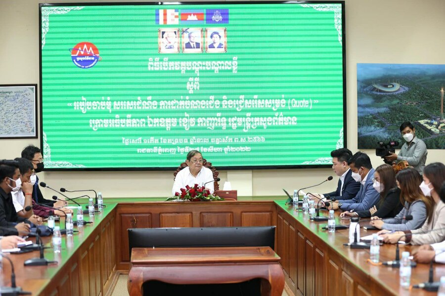 ឯកឧត្តម ខៀវ កាញារីទ្ធ រដ្ឋមន្ត្រីក្រសួងព័ត៌មាន អញ្ជើញជាអធិបតីពីធីបើកវគ្គបណ្ដុះបណ្ដាលខ្លី ស្តីពីរបៀបចាប់មុំសរសេរដំណឹង ដាក់ចំណងជើង និងជ្រើសរើសសម្រង់ (Quote) នាព្រឹកថ្ងៃទី ២៧ ខែសីហា ឆ្នាំ២០២២ នៅទីស្តីការក្រសួង រាជធានីភ្នំពេញ។