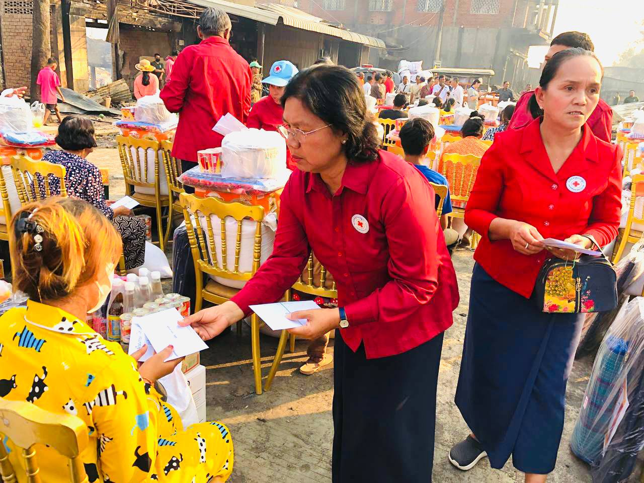 ឯកឧត្ដម ស៊ុម សុវណ្ណារិទ្ធិ ប្រធានគណៈកម្មាធិការសាខា បានពាំនាំការសួរសុខទុក្ខពីសំណាក់ សម្ដេចកិត្តិព្រឹទ្ធបណ្ឌិត ប៊ុន រ៉ានី ហ៊ុន សែន ប្រធានកាកបាទក្រហមកម្ពុជា ដែលបានចូលរួមសោកស្ដាយចំពោះការខូចខាត ព្រមទាំងវត្ថុមានតម្លៃដែលបាត់បង់ក្នុងគ្រោះ អគ្គីភ័យនេះដែលជាកម្លាំងញើសឈាមរបស់បងប្អូនប្រជាពលរដ្ឋខិតខំរកបានដោយការងារសុចរិត ។