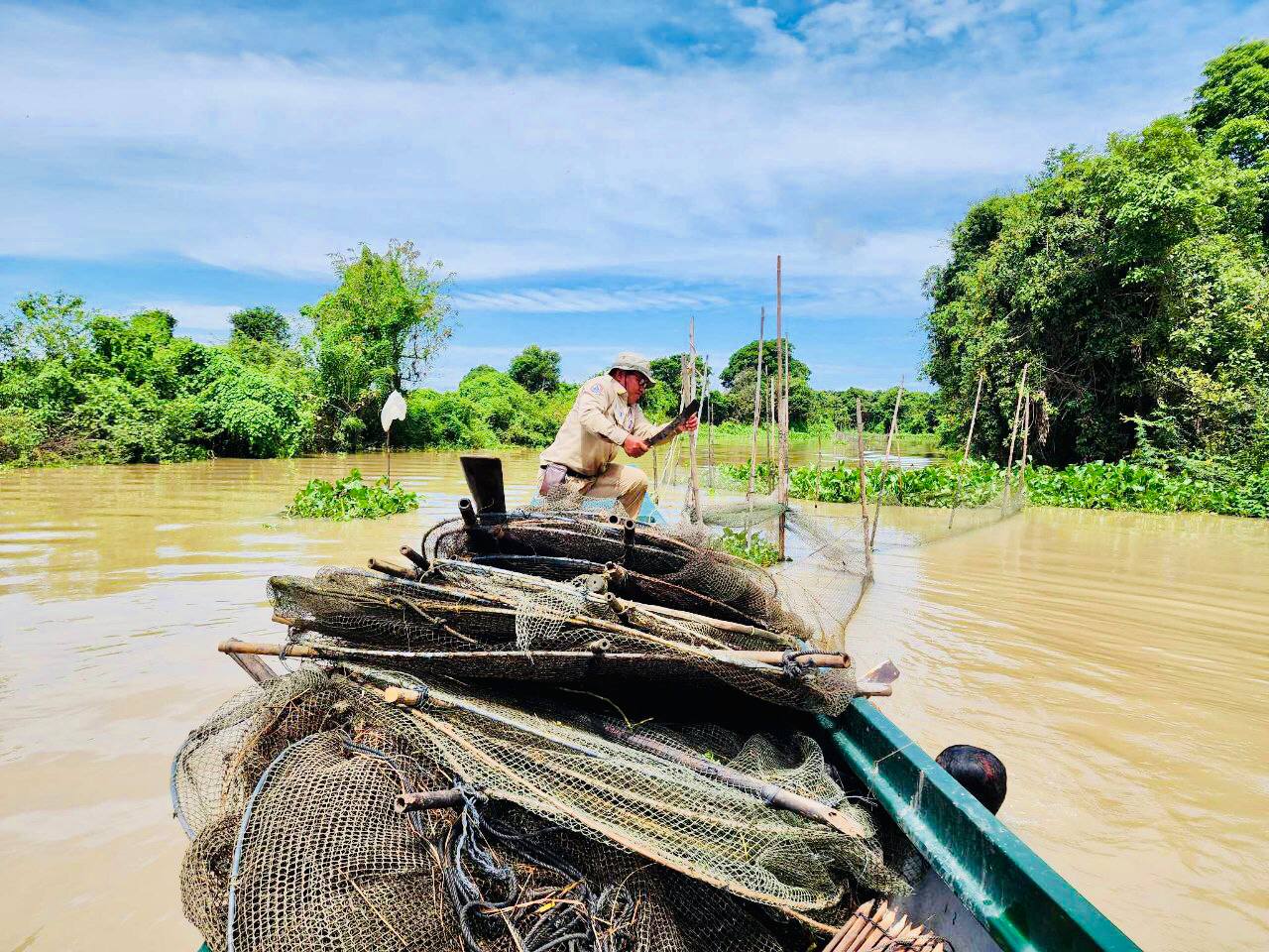 លោក លី ឡា នាយខណ្ឌរដ្ឋបាលជលផល នៃមន្ទីរកសិកម្ម រុក្ខាប្រម៉ាញ់និងនេសាទ ខេត្តកំពង់ឆ្នាំង បានឲ្យដឹងថា នៅក្នុងប្រតិបត្តិការណ៍នេះបានបែងចែកកម្លាំងជា២ក្រុម ។ ក្រុមទី១ កម្លាំងជំនាញខណ្ឌរដ្ឋបាលជលផល បានសហការជាមួយកម្លាំងសហគមប៍នេសាទ ភ្លងសែនជ័យនិងសហគមន៍នេសាទភូមិថ្មី បានចុះរុះរើរបាំងស្បៃមុង ត្រង់ចំណុចព្រែកផ្តិល ពាមដៃបីទំនប់ក្បាលកន្លង់ ក្នុងឃុំពាមឆ្កោក ស្រុកជលគិរី។ និងក្រុមទី២ កម្លាំងរដ្ឋបាលជលផលស្រុកបរិបូរណ៍បានចុះរុះរើរបាំងសាច់អួន នៅចំណុចព្រែកពាមស្ទឹង ក្នុងឃុំកំពង់ព្រះគគីរ ស្រុកបរិបូរណ៍ដោយបានសម្រេចធ្វើការរុះរើបំផ្លាញចោលនៅនឹងកន្លែងតែម្តង ។