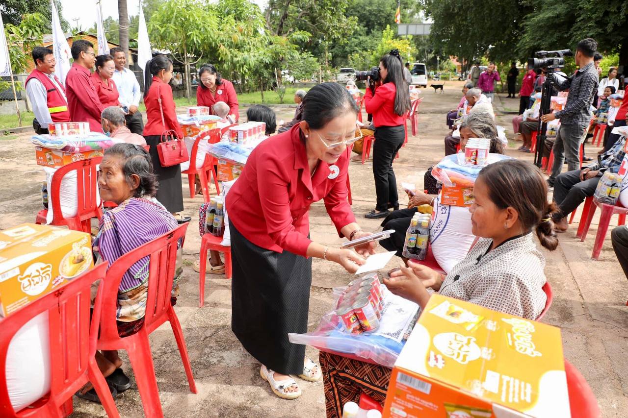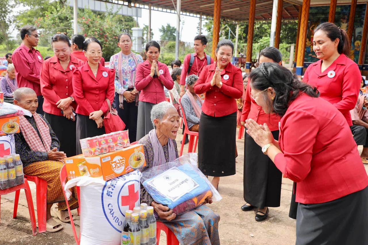 • កំពង់ឆ្នាំង ៖ នាថ្ងៃទី១ ខែសីហា ឆ្នាំ២០២៣នេះ កាកបាទក្រហមកម្ពុជា ដែលមាន ហ្លួងម៉ែ នរោត្តម មុនិនាថ សីហនុ ជាព្រះប្រធានកិត្តិយស និងសម្តេចកិត្តិព្រឹទ្ធបណ្ឌិតប៊ុន រ៉ានី ហ៊ុនសែន ជាប្រធាន បានចែកអំណោយមនុស្សធម៌ ជួយសម្រាលការលំបាកដល់ប្រជាពលរដ្ឋងាយរងគ្រោះបំផុត ចំនួន៦៧គ្រួសារ រស់នៅស្រុកទឹកផុស ខេត្តកំពង់ឆ្នាំង ដែលពិធីនេះប្រព្រឹត្តទៅក្រោមវត្តមាន លោកជំទាវ ម៉ែន នារីសោភ័គ អគ្គលេខាធិការរងទី១ កាកបាទក្រហមកម្ពុជា និងឯកឧត្តម ស៊ុន សុវណ្ណារិទ្ធិ ប្រធានគណៈកម្មាធិការសាខាកាកបាទក្រហមកម្ពុជា ខេត្តកំពង់ឆ្នាំង។