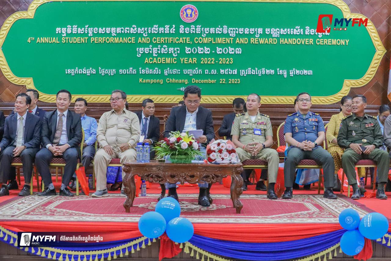 លោកអភិបាលរងខេត្តកំពង់ឆ្នាំង បានថ្លែងអំពាវនាវបែបនេះ នៅក្នុងពិធីសម្តែងសមត្ថភាព ប្រគល់វិញ្ញាបនបត្រ បណ្ណសរសើរ និងចែករង្វាន់ ប្រចាំឆ្នាំសិក្សា ២០២២,២០២៣របស់សាលារៀនបញ្ញាវន្តអង្គរ នារសៀលថ្ងៃទី២២ ខែធ្នូ ឆ្នាំ២០២៣ ។