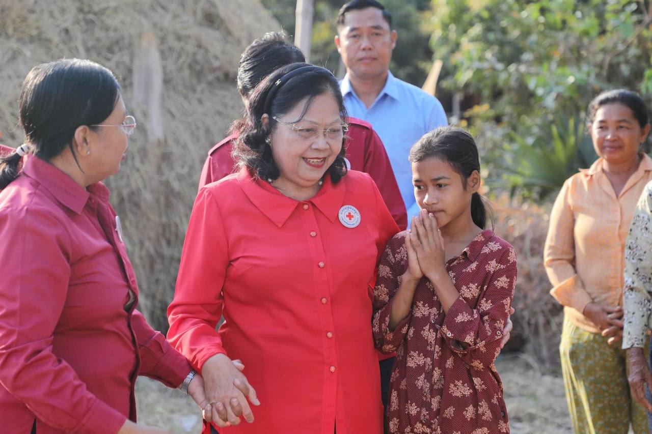 • សម្តេចកិត្តិព្រឹទ្ធបណ្ឌិត ប៊ុន រ៉ានី ហ៊ុនសែន ប្រធានកាកបាទក្រហមកម្ពុជា នៅថ្ងៃទី ២៩ ខែមករា ឆ្នាំ២០២៤នេះ បានចាត់ឱ្យលោកជំទាវ ម៉ែន នារីសោភ័គ អគ្គលេខាធិការរងទី ១ ចុះពិនិត្យភ្លាមៗទីតាំងសាងសង់ផ្ទះថ្មី ១ខ្នង ជូនដល់កុមារកំព្រា ២នាក់បងប្អូន រស់នៅភូមិត្បែងខ្ពស់ ឃុំត្បែងខ្ពស់ ស្រុកសាមគ្គីមានជ័យ ខេត្តកំពង់ឆ្នាំង និងបញ្ជូនកុមារជាបង មកព្យាបាលបន្ទាន់នៅមន្ទីរពេទ្យកាល់ម៉ែត។