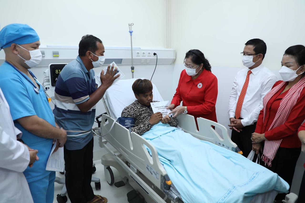 ក្នុងឱកាសចុះសួរសុខទុក្ខនៅមន្ទីរពេទ្យ , លោកជំទាវ អគ្គលេខាធិការរងទី ១ បានពាំនាំប្រសាសន៍របស់ សម្តេចកិត្តិព្រឹទ្ធបណ្ឌិត ប៊ុន រ៉ានី ហ៊ុនសែន ដែលផ្តាំផ្ញេីសួរសុខទុក្ខ និងគិតគូរពីជីវភាពរស់នៅ ព្រមទាំងបានជម្រាបជូនពី ការសាងសង់ផ្ទះថ្មី ១ខ្នង រួមទាំងការគិតគូរពីសុខភាព បញ្ជូនមកពិនិត្យព្យាបាលភ្លាមៗ និងរ៉ាប់រងថ្លៃការចំណាយទាំងស្រុងលេីការព្យាបាលនេះផងដែរ។ លោកជំទាវ បានផ្តាំផ្ញេីលេីកទឹកចិត្តឱ្យថែទាំសុខភាពឱ្យបានល្អ អនុវត្តតាមវេជ្ជបញ្ជាគ្រូពេទ្យ និងជូនពរឆាប់បានជាសះស្បេីយឡេីងវិញ។ ទន្ទឹមនឹងនេះ សម្តេចកិត្តិព្រឹទ្ធបណ្ឌិត ប៊ុន រ៉ានី ហ៊ុនសែន បានឧបត្ថម្ភថវិកាចំនួន ៥លានរៀល ក្នុងអំឡុងពេលកំពុងសម្រាកព្យាបាលផងដែរ។ លោកជំទាវ ក៏បានថ្លែងអំណរគុណចំពោះម្តាយធំឪពុកធំរបស់កុមារទាំងពីរ ដែលបានផ្តល់ជម្រកស្នាក់នៅបណ្តោះអាសន្ន និងនៅមេីលថែទាំក្មួយក្នុងពេលកំពុងសម្រាលព្យាបាលជំងឺនេះផងដែរ ។