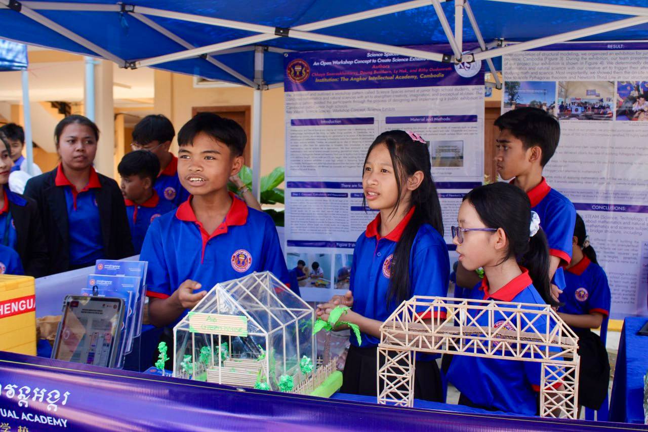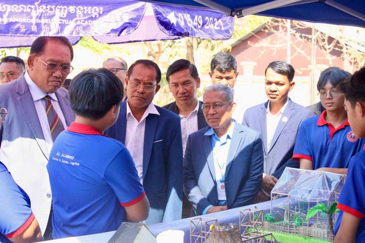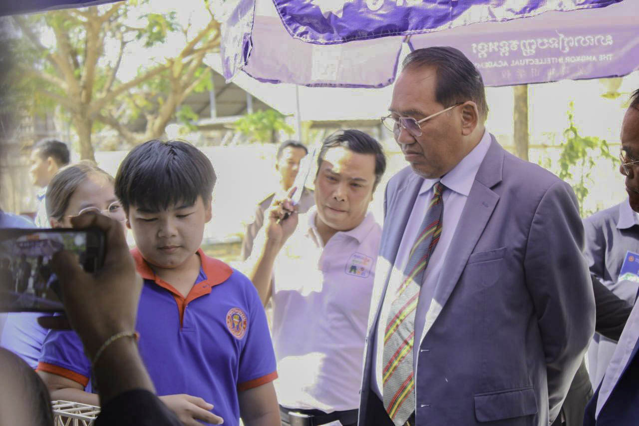 ពិព័រណ៍ស្នាដៃសិស្សផ្នែកវិទ្យាសាស្ត្រ របស់សាលារៀនបញ្ញវន្តអង្គរ សាខាខេត្តកំពង់ឆ្នាំង ត្រូវបានអញ្ជើញចូលរួមទស្សនា និងលើកទឹកចិត្តពីសំណាក់ឯកឧត្តម ប៊ូ ជុំសេរី អនុរដ្ឋលេខាធិការ នៃក្រសួងអប់រំ យុវជន និងកីឡា ឯកឧត្តម យិន សាវ៉េន អភិបាលរង នៃគណៈអភិបាលខេត្តកំពង់ឆ្នាំង លោក ស៉ឹម ប្រិម ប្រធានមន្ទីរអប់រំ យុវជន និងកីឡាខេត្ត និងថ្នាក់ដឹកនាំមន្ទីរ-ស្ថាប័នជុំវិញខេត្ត។